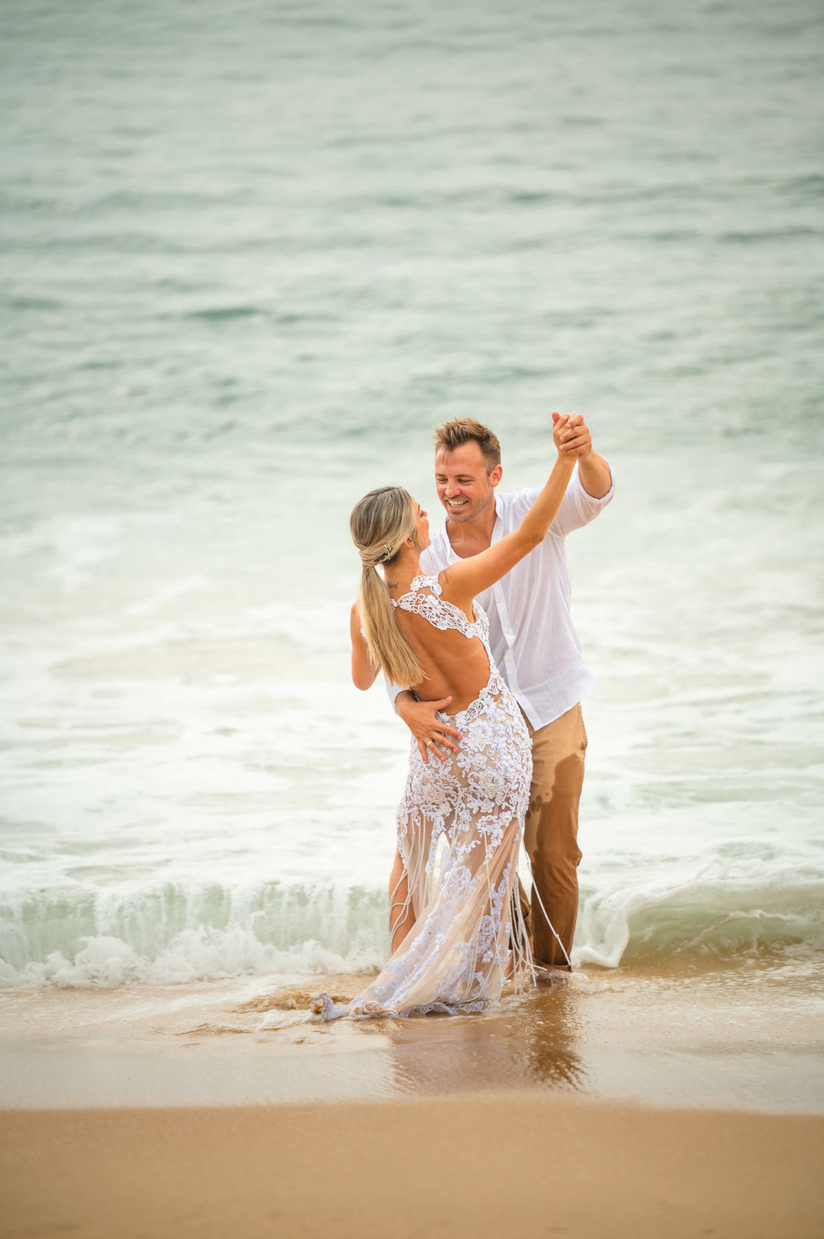 É importante destacar que a Praia Grossa possui uma logística mais complexa de acesso. O local exige uma caminhada de aproximadamente 20 a 25 minutos por trilha, o que torna o deslocamento com equipamentos e produção mais exigente. Por esse motivo, atualmente só realizamos ensaios nesse local quando o casal possui acesso autorizado para chegar de carro até a praia. Essa transparência ajuda os noivos a escolherem o melhor local para o pré wedding em Itapema, considerando conforto, tempo de deslocamento e viabilidade logística.