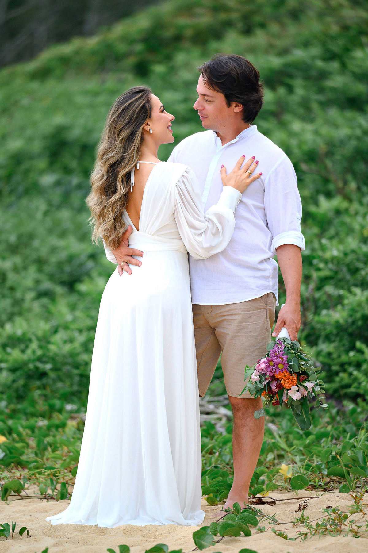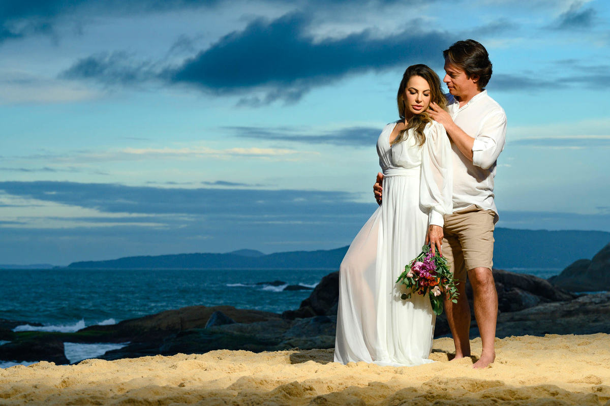 O ensaio pré-wedding da Francieli e do Fábio aconteceu em um dos cenários mais lindos do litoral catarinense: a Praia do Estaleirinho, em Balneário Camboriú – SC, em frente ao Bali Bistrô, casa de eventos onde o casal também celebrou o casamento e que foi responsável por toda a decoração especial montada para o ensaio.