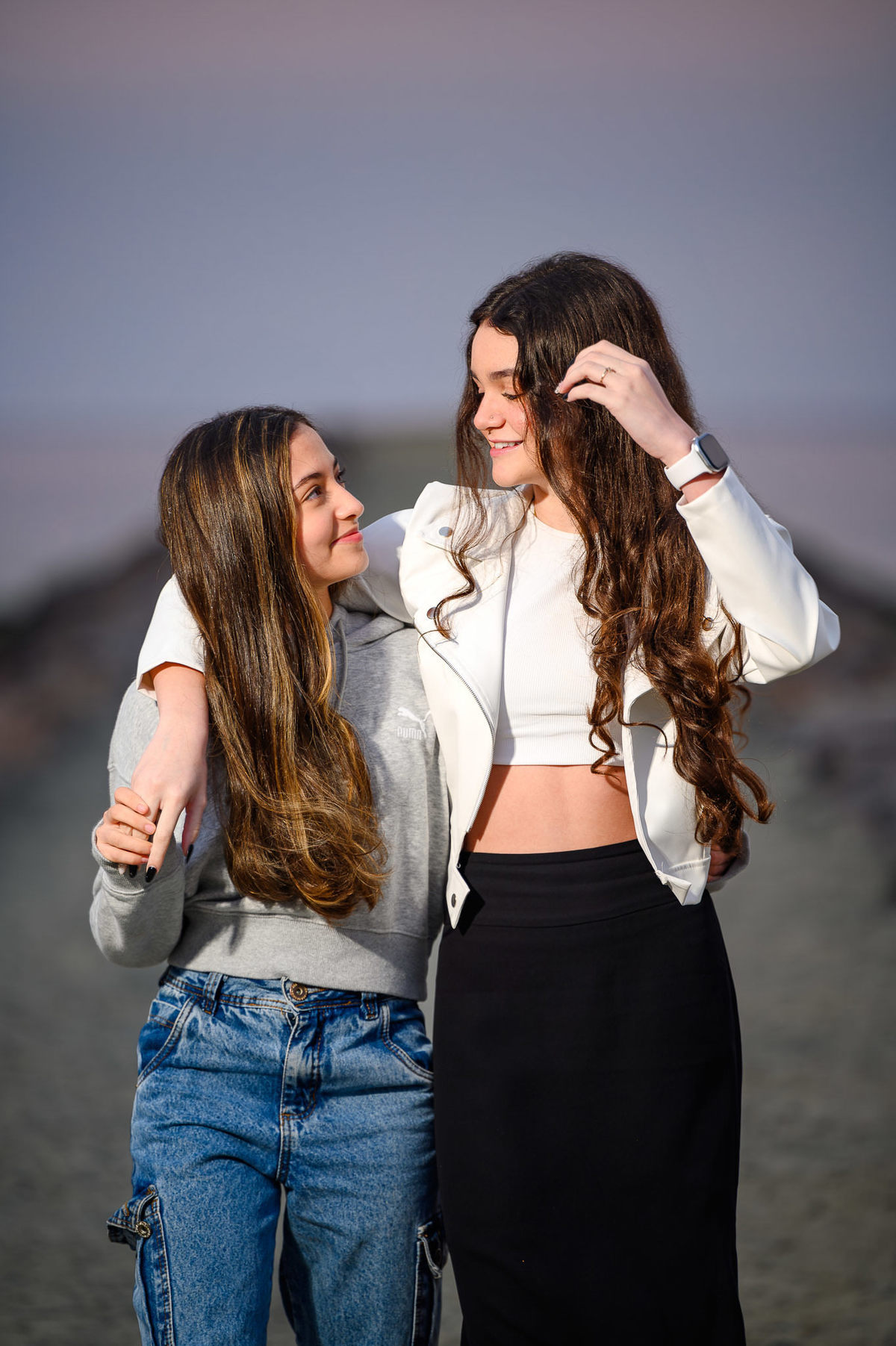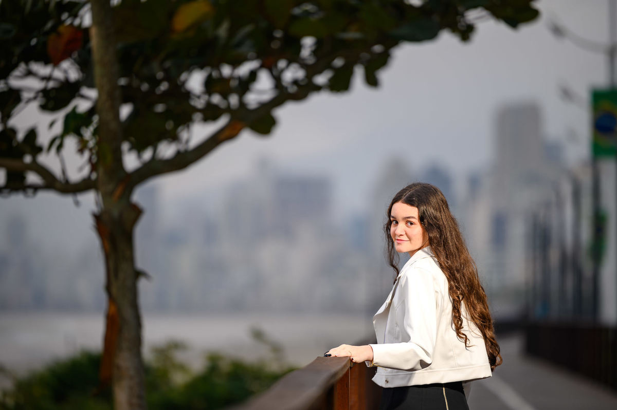 Esse ensaio de 15 anos foi realizado no molhe de Itapema, em Santa Catarina, em uma manhã nublada que trouxe uma luz suave e uniforme para as fotos. Mesmo com o molhe ainda em obras na época, o cenário rendeu imagens autênticas, com uma estética mais urbana e ao mesmo tempo conectada ao mar.