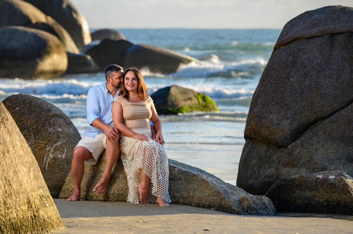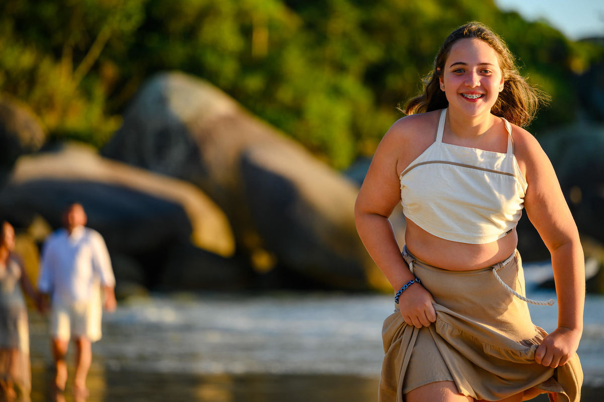 Bombinhas é um dos destinos mais procurados do litoral catarinense para ensaios justamente por oferecer praias com visual limpo, natureza preservada e uma luz incrível no amanhecer e no final de tarde. Para famílias que vêm passar férias na região, o ensaio acaba sendo uma forma de levar um pedacinho dessa experiência para casa, em forma de fotografia.