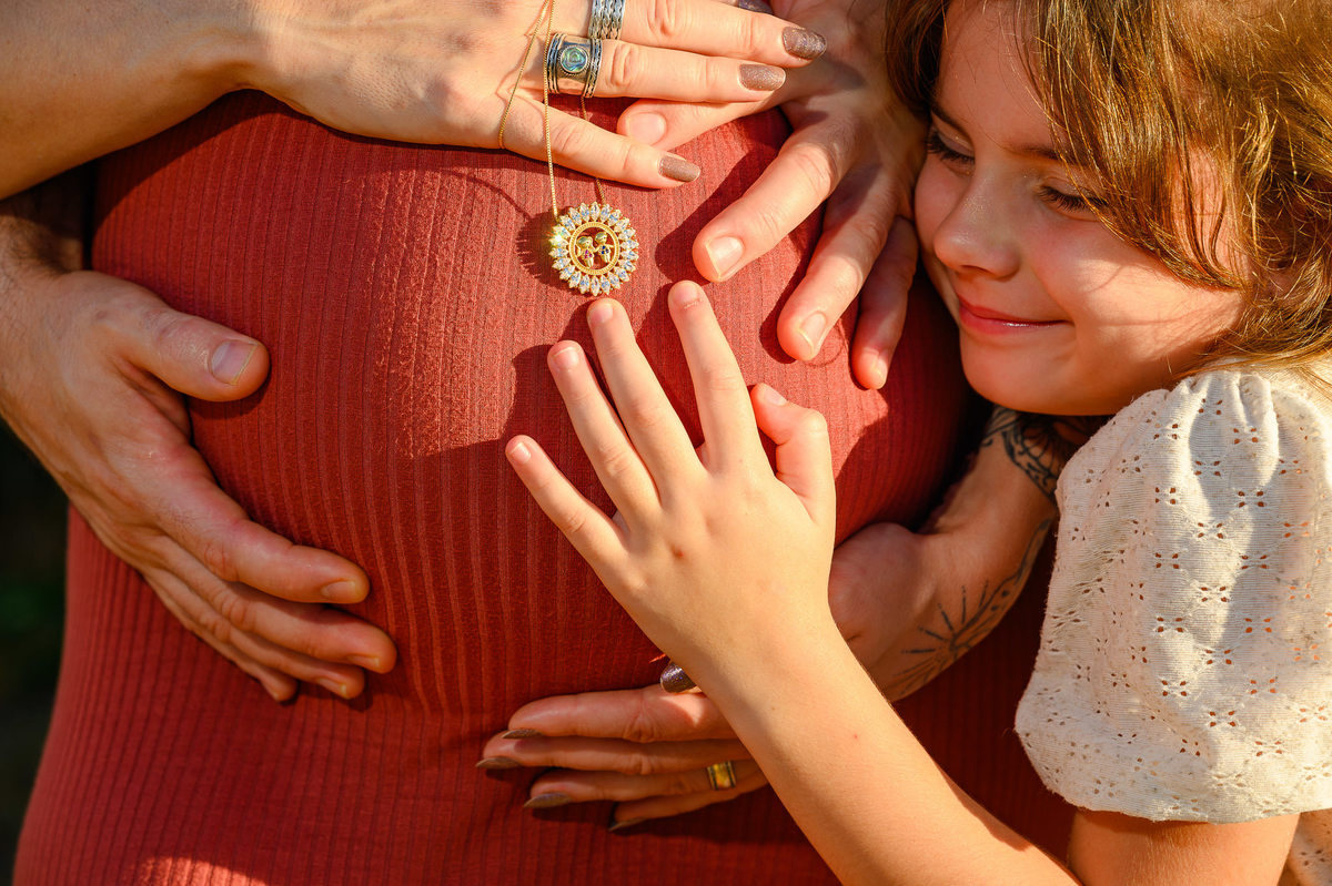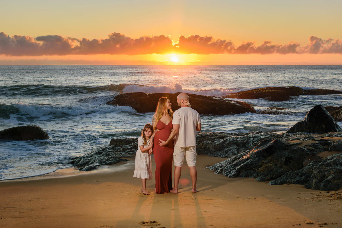 Ensaio Gestante em Família na Praia do Estaleirinho ao Amanhecer | Balneário Camboriú – SC