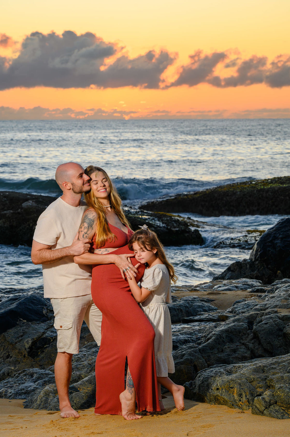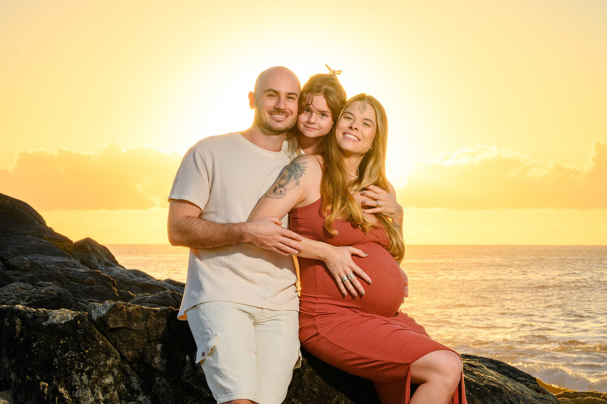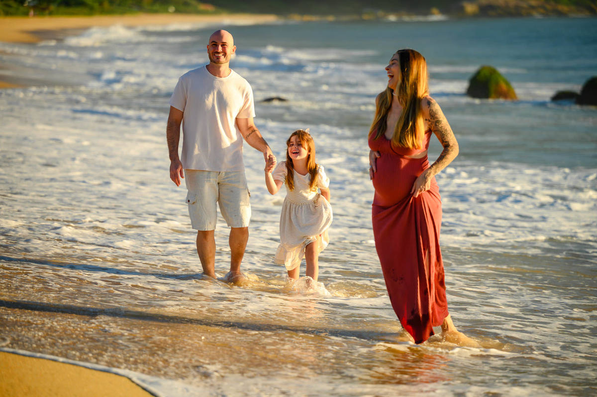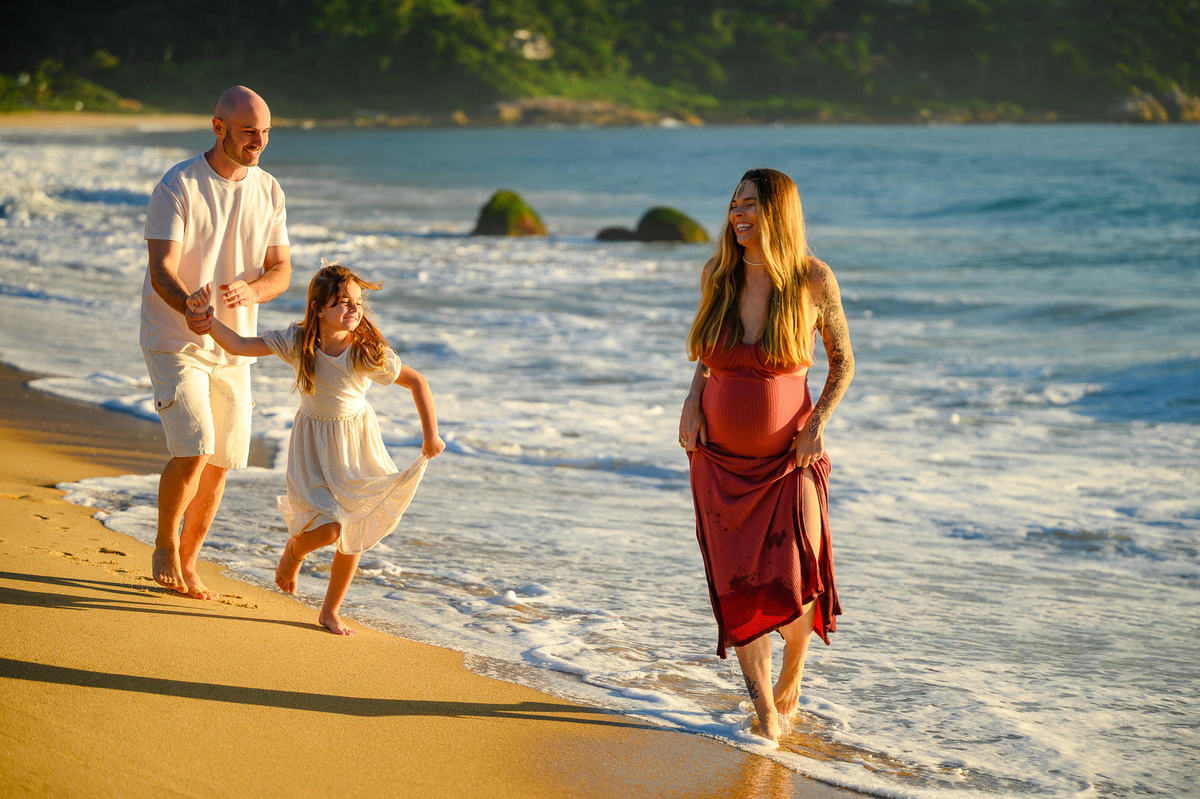 Ensaio Gestante em Família na Praia do Estaleirinho ao Amanhecer | Balneário Camboriú – SC