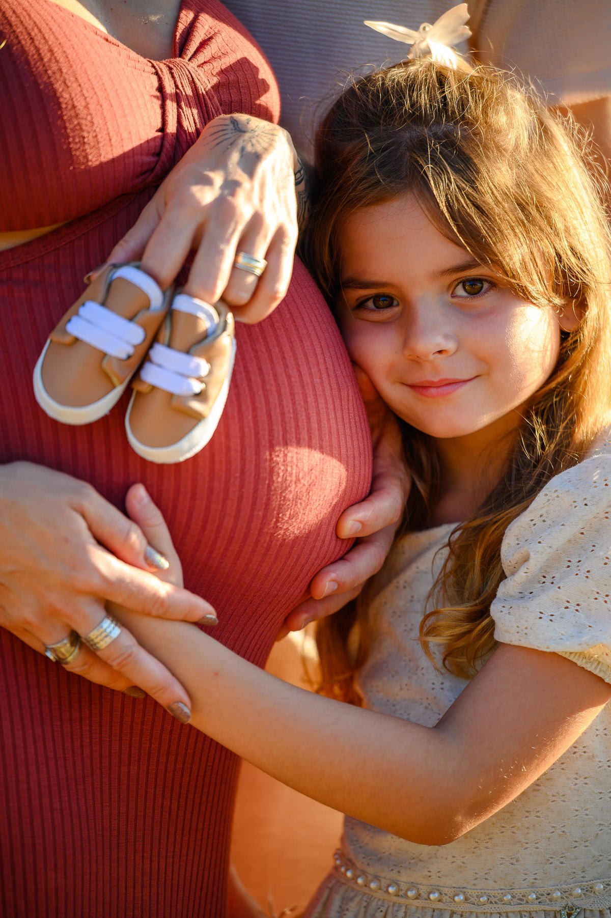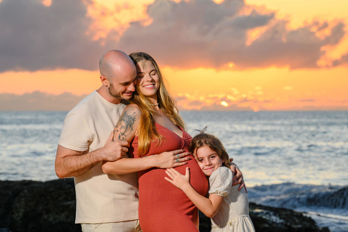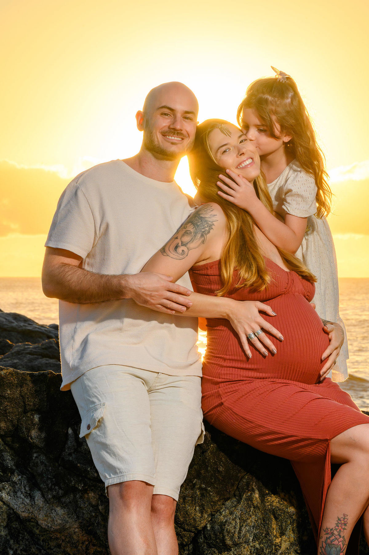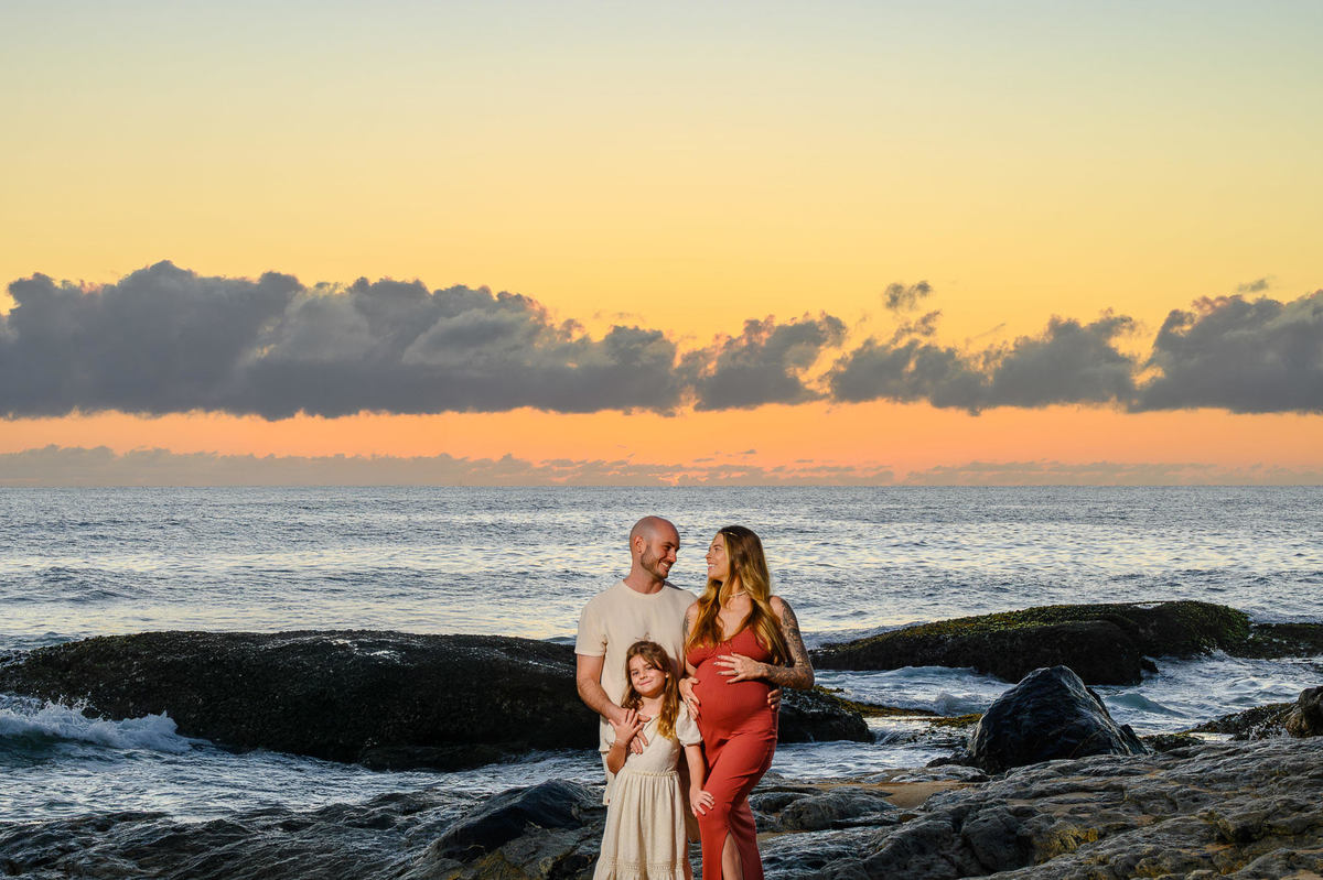 Ensaio Gestante em Família na Praia do Estaleirinho ao Amanhecer | Balneário Camboriú – SC