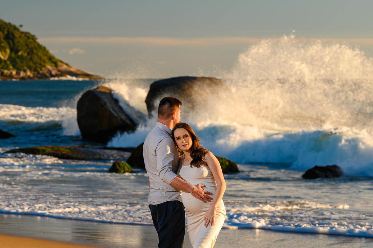 Se você procura um ensaio fotográfico de gestante em Balneário Camboriú ou na região de Itapema, esse tipo de proposta ao amanhecer entrega um resultado estético diferenciado e muito mais atemporal.
