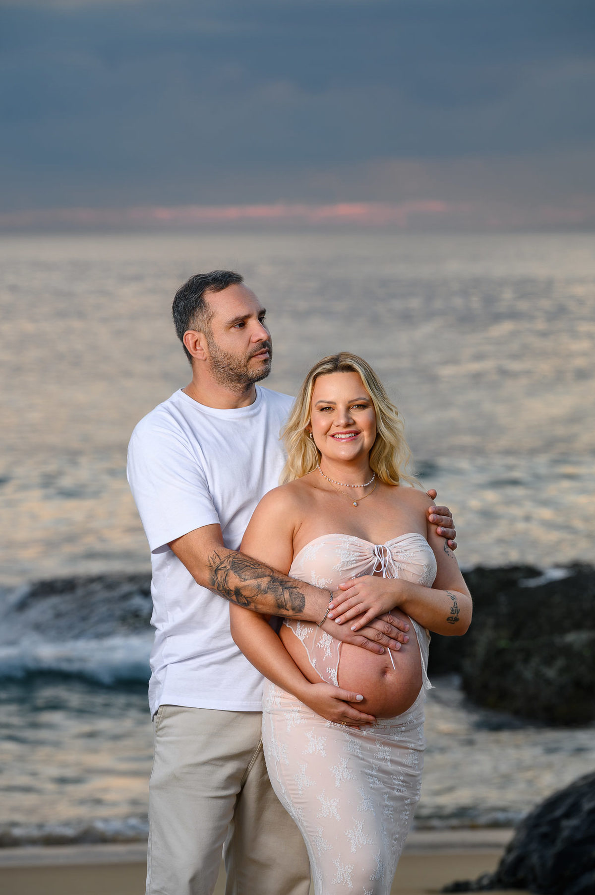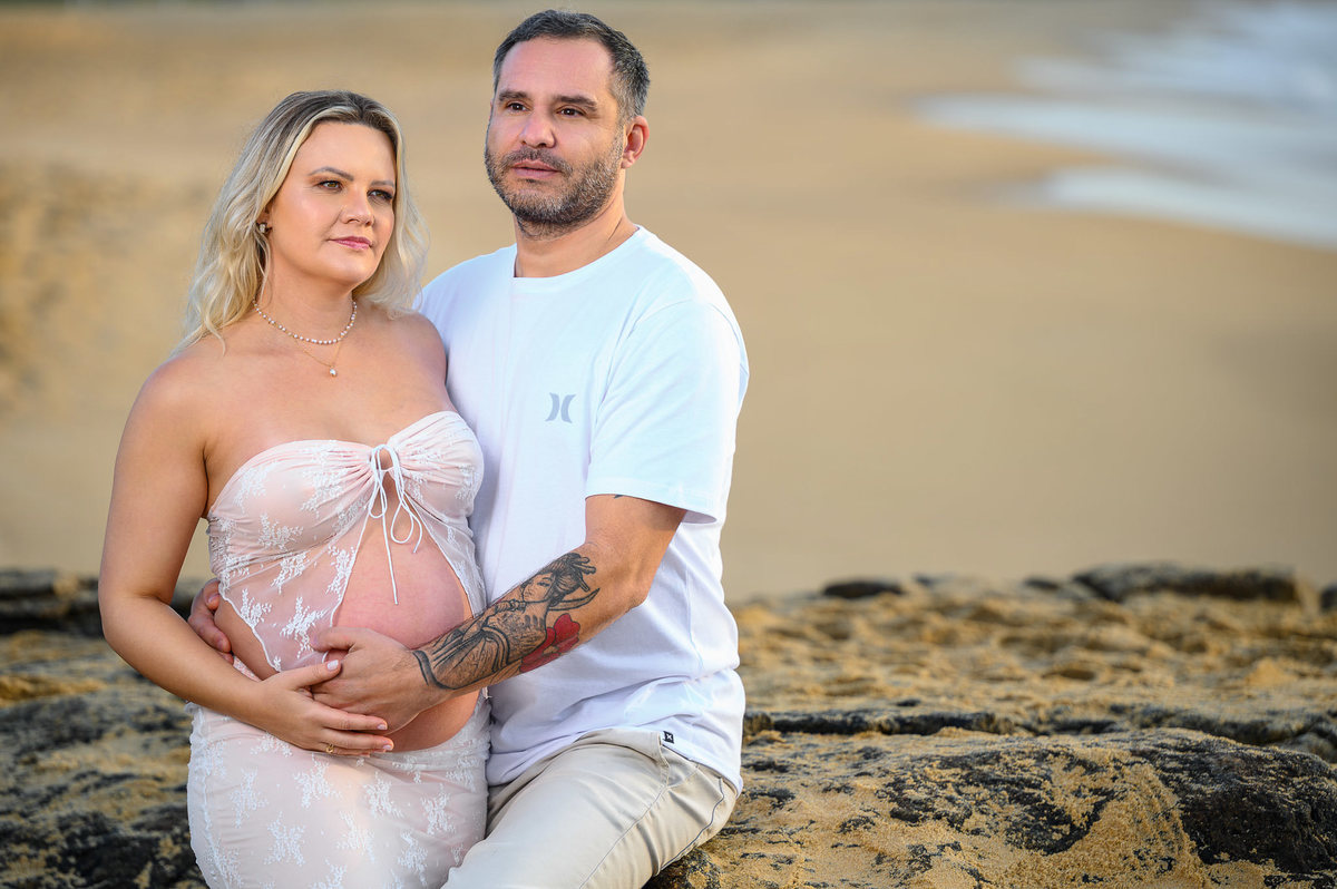 Ensaio Gestante ao Amanhecer na Praia do Estaleirinho – Balneário Camboriú, SC