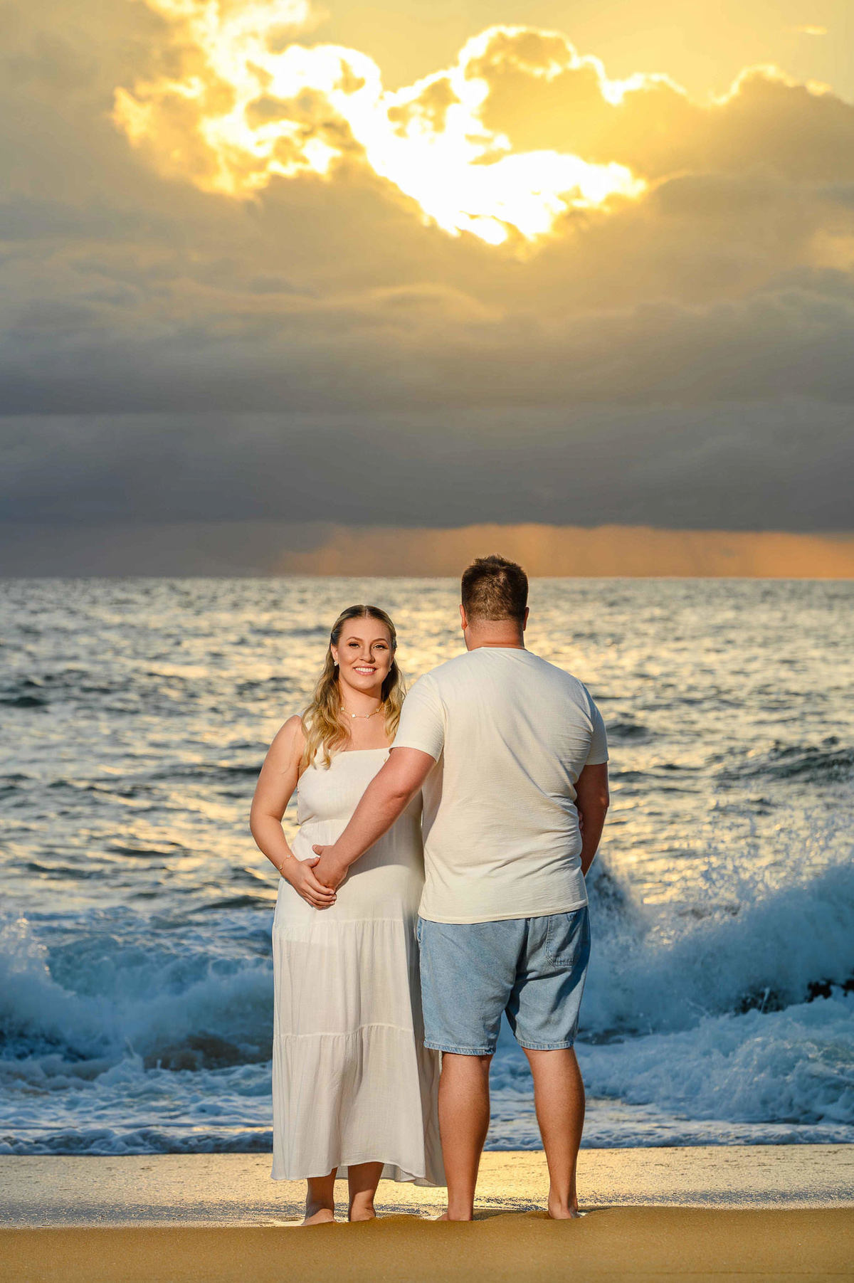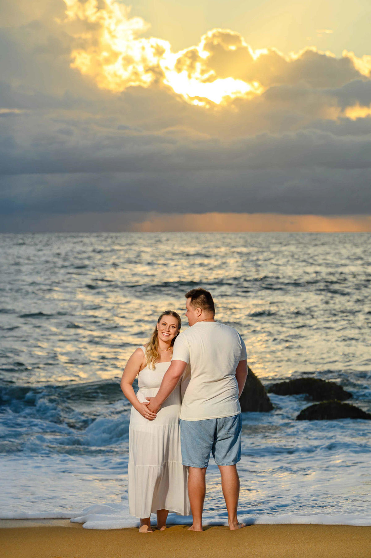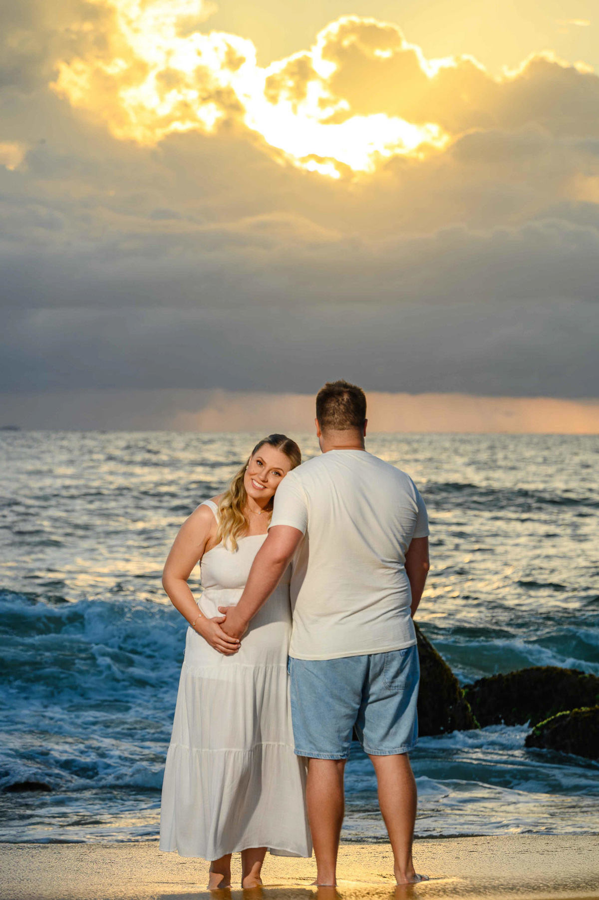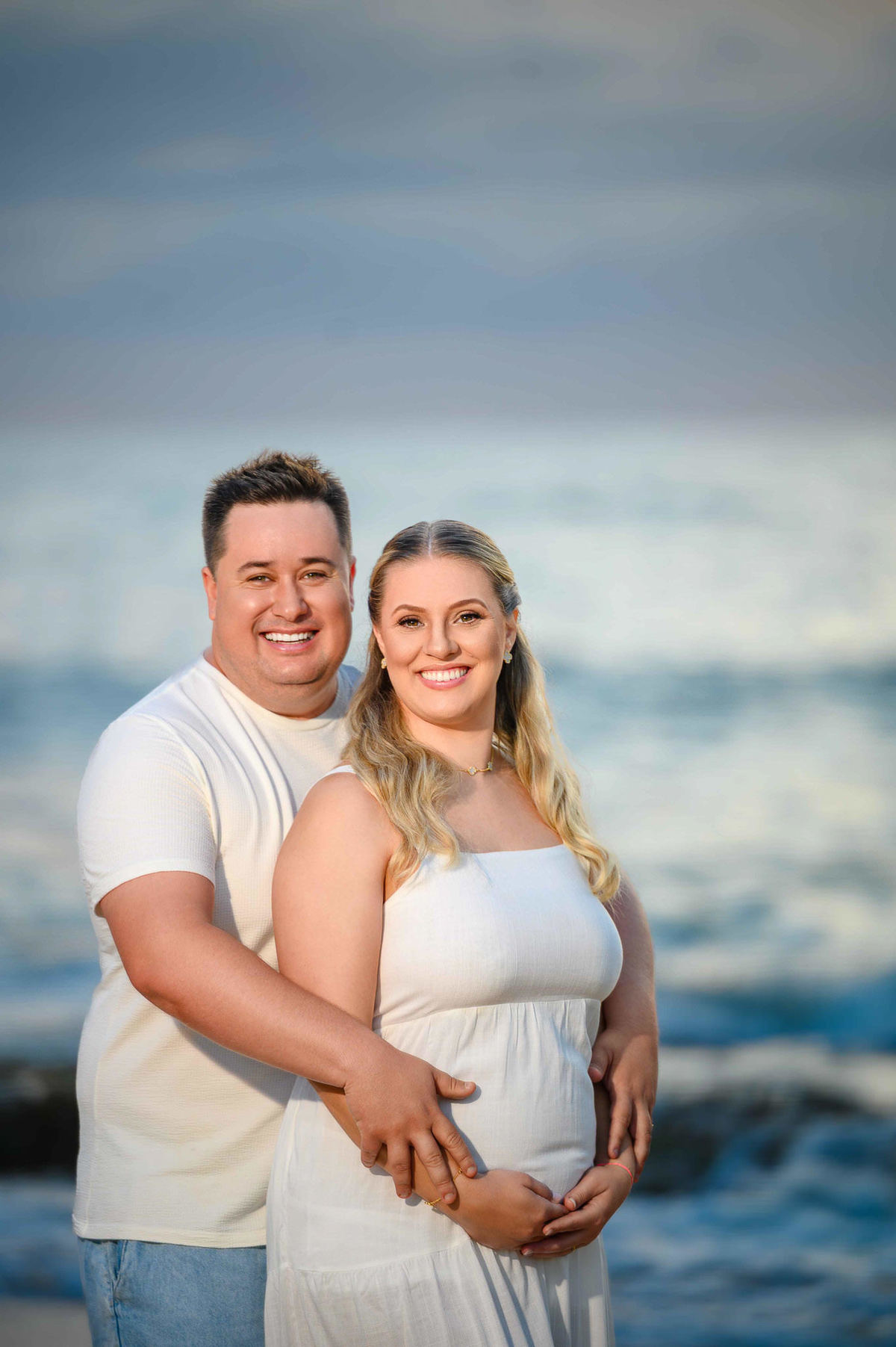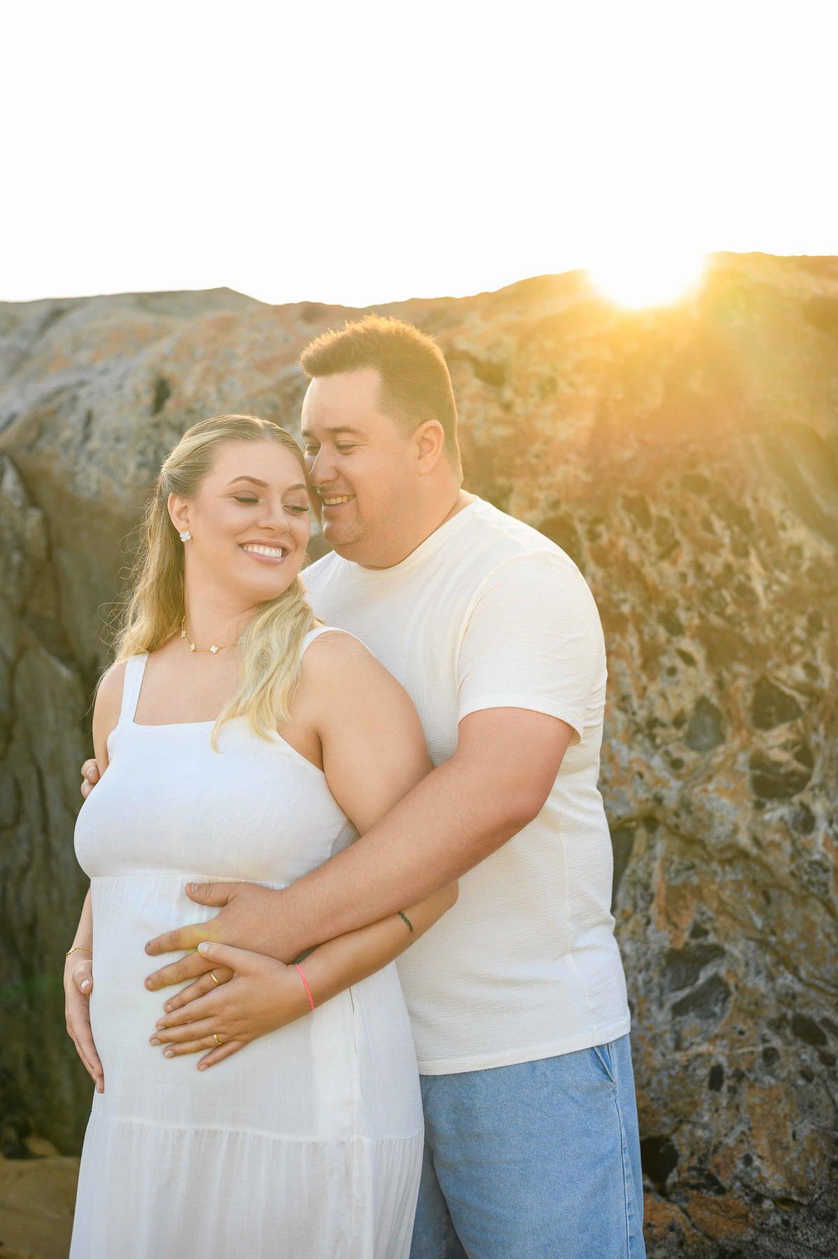 Durante o ensaio, buscamos uma fotografia natural, com direção suave e espaço para que o casal fosse simplesmente eles mesmos. A gestação traz um brilho diferente, um tipo de emoção que não se repete, e nosso trabalho como fotógrafos é estar atentos a esses detalhes: os olhares, os gestos espontâneos, o cuidado entre o casal e a forma como tudo muda quando um novo membro está a caminho.