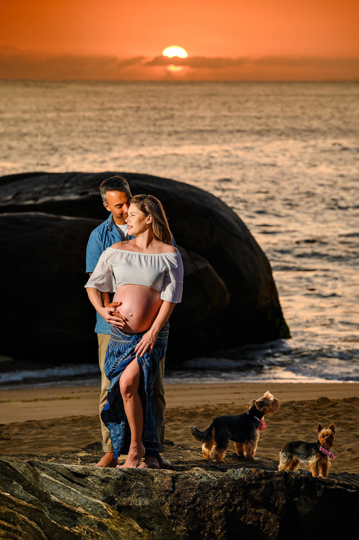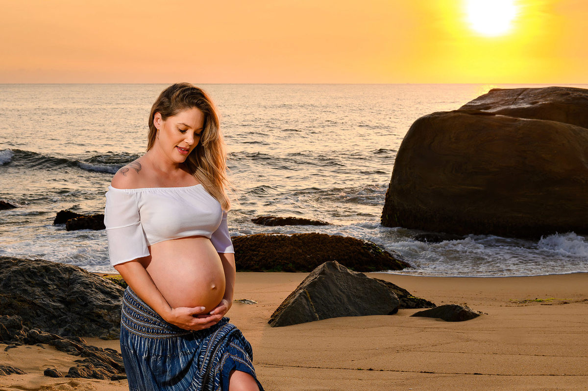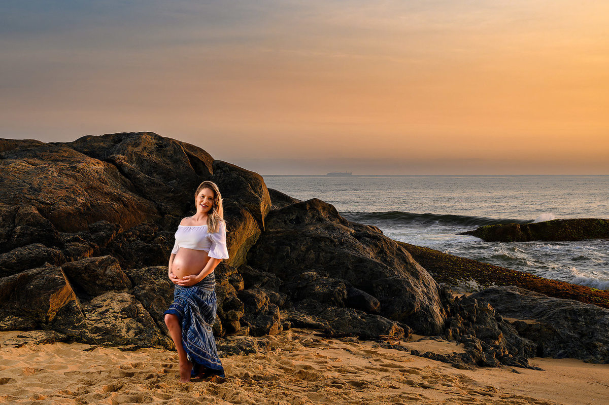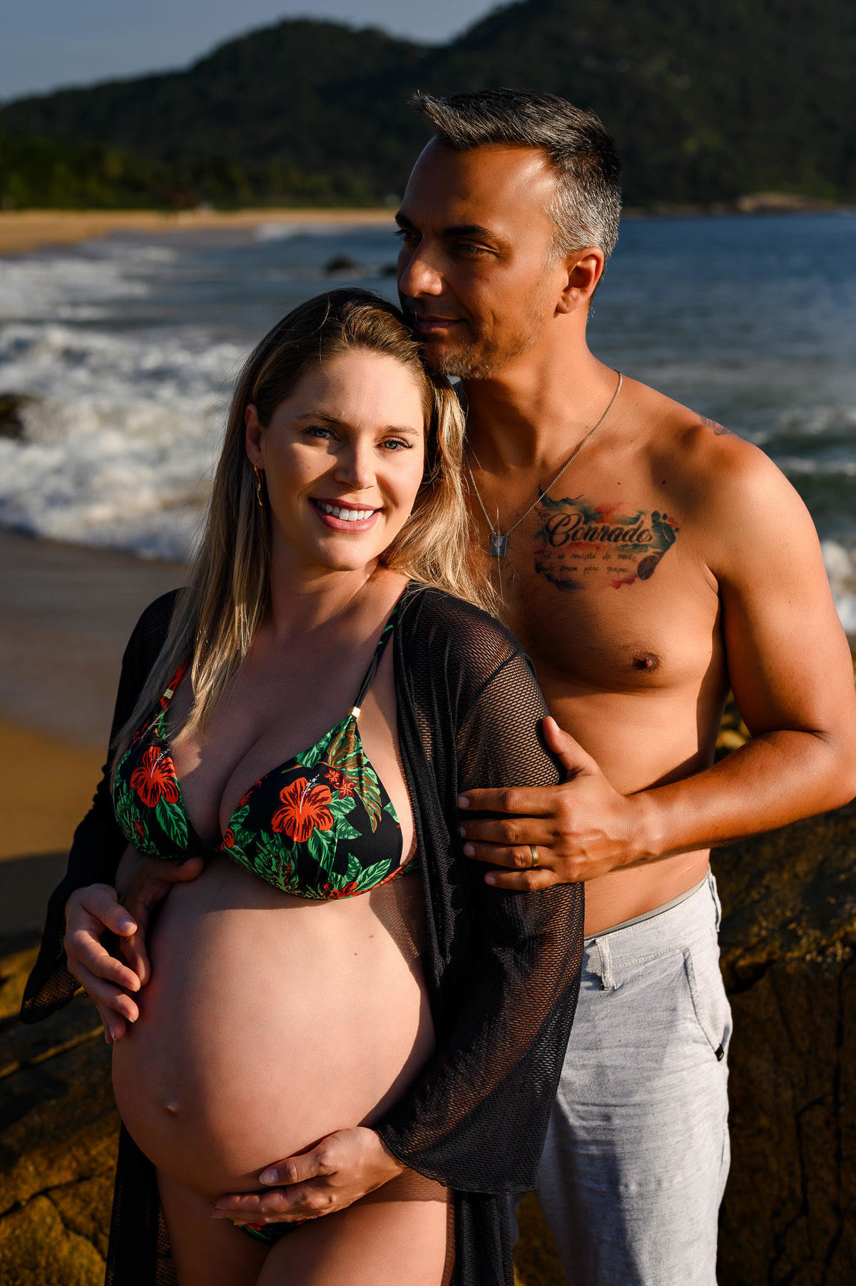 Ensaio Gestante ao Amanhecer na Praia do Estaleirinho, Balneário Camboriú – SC