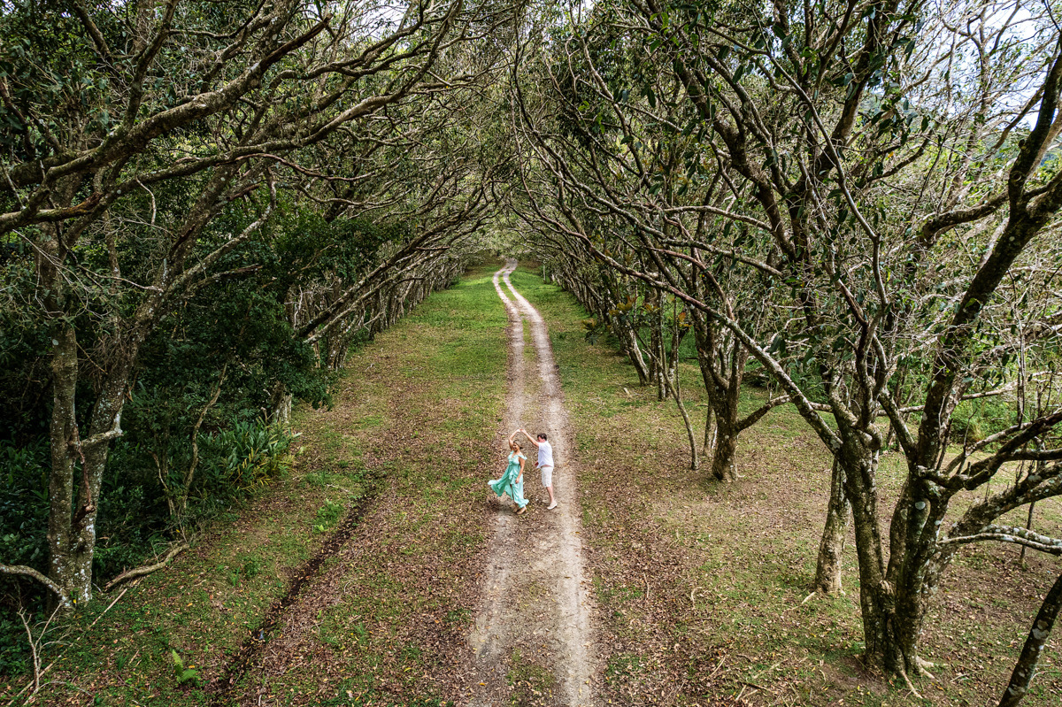 Se você quer exclusividade, Taquarinhas é perfeita! É praticamente deserta e tem uma vista de tirar o fôlego. O mirante na estrada já é um ótimo ponto para as primeiras fotos do ensaio. No local, há um rio natural e um pequeno bosque que acrescentam ainda mais charme ao cenário.
